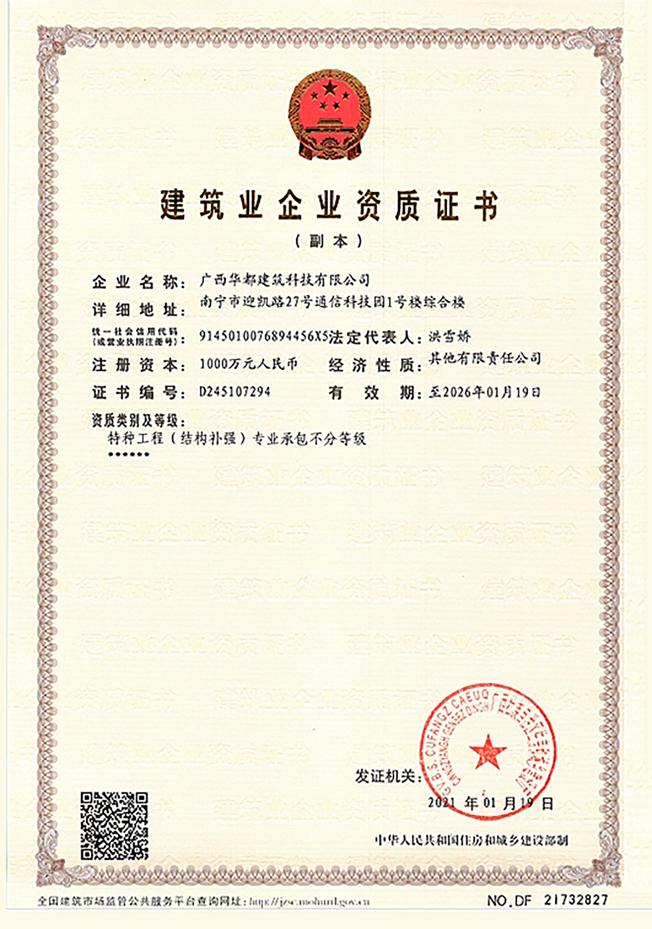 特種工程(結(jié)構(gòu)補強)專業(yè)承包資質(zhì)